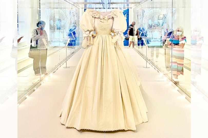 ABOVE: Princess Diana’s wedding dress, on display at Kensington Palace for the first time in 25 years. (Photo: instagram/lovely.little.london)