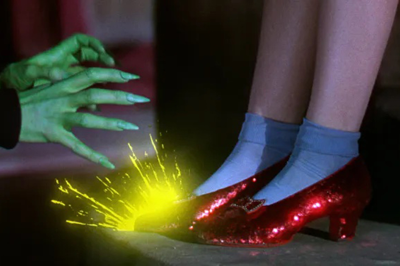 “There was something particular about the red and the sparkles,” says Turner Classic Movies host Alicia Malone. “That particular process made the red stand out even more. The fact that it sparkled, those sequins when she moved her feet, and the wand pointing towards her slippers—it’s just such a beautiful image [that] definitely stands out much more than silver slippers would have.”